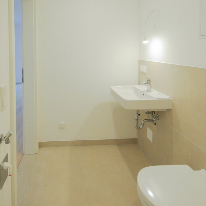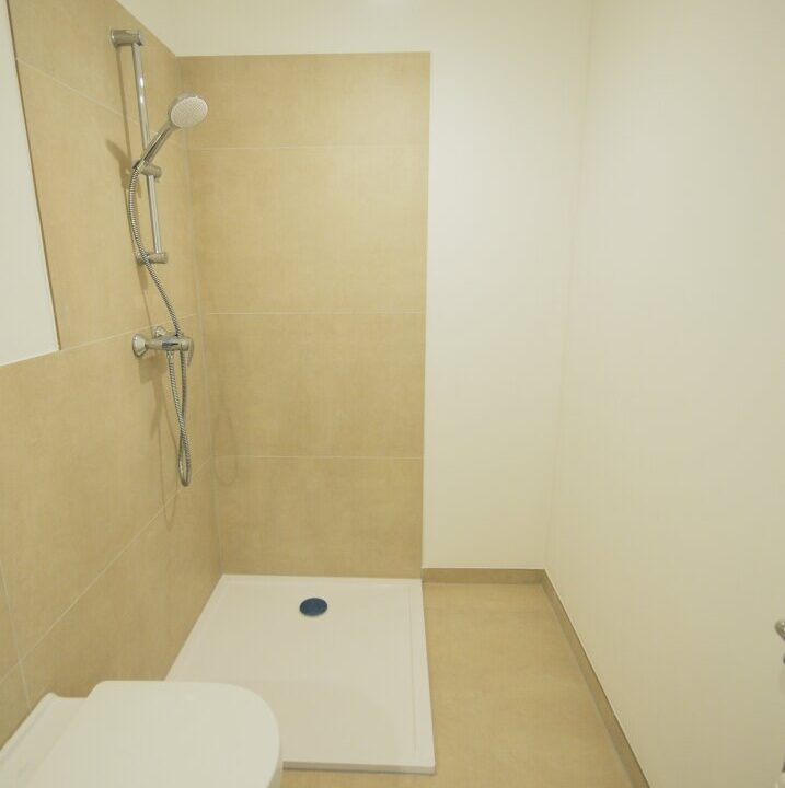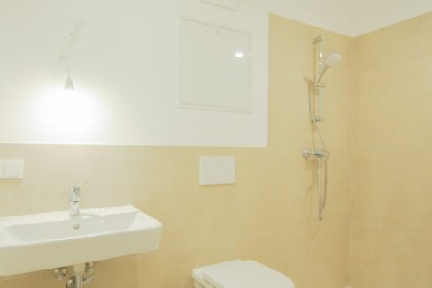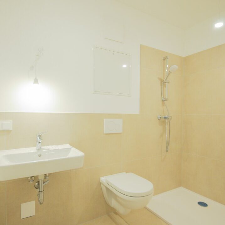– Badezimmer mit Dusche und WC: 120×60 beige Fliesen