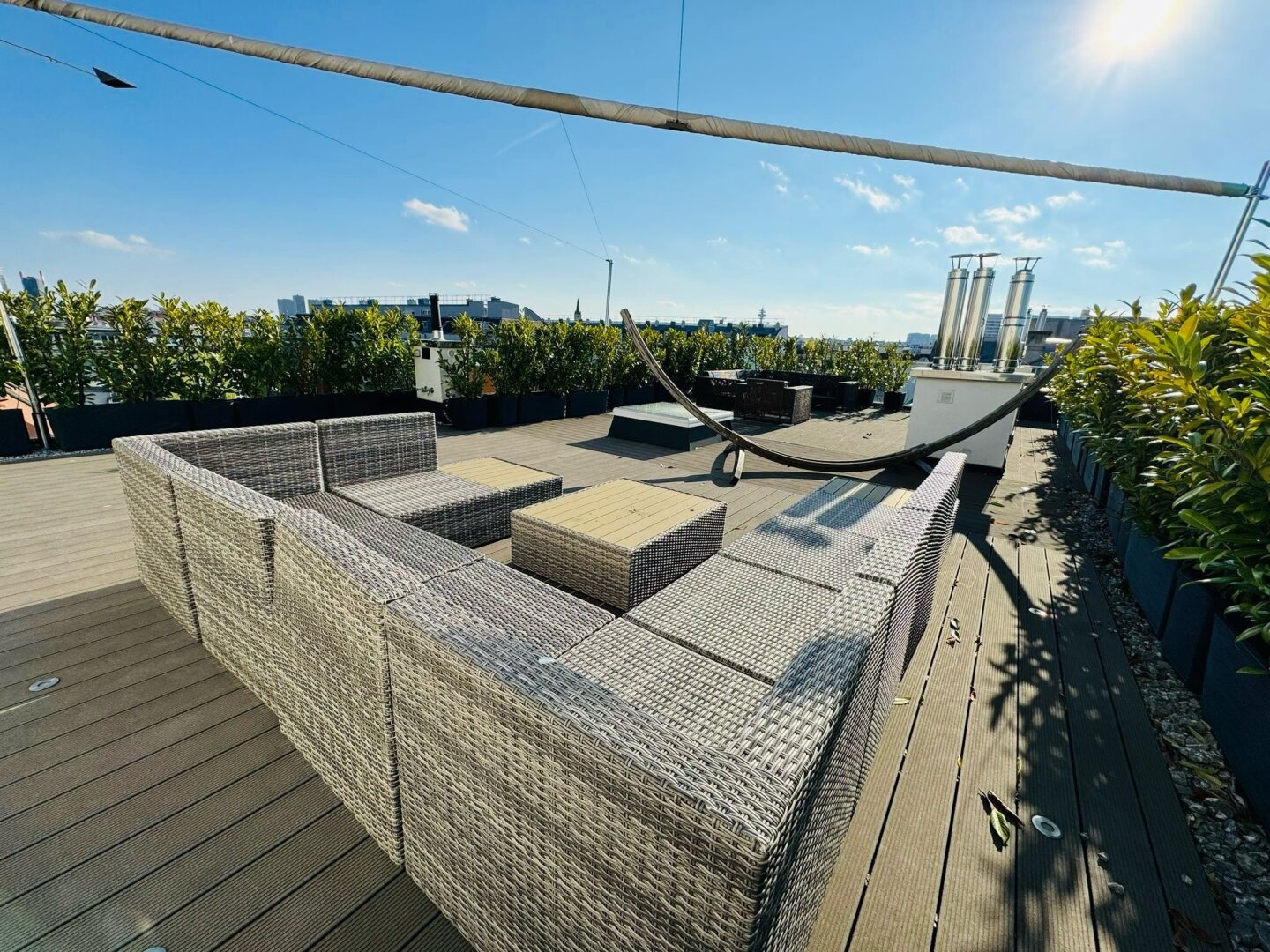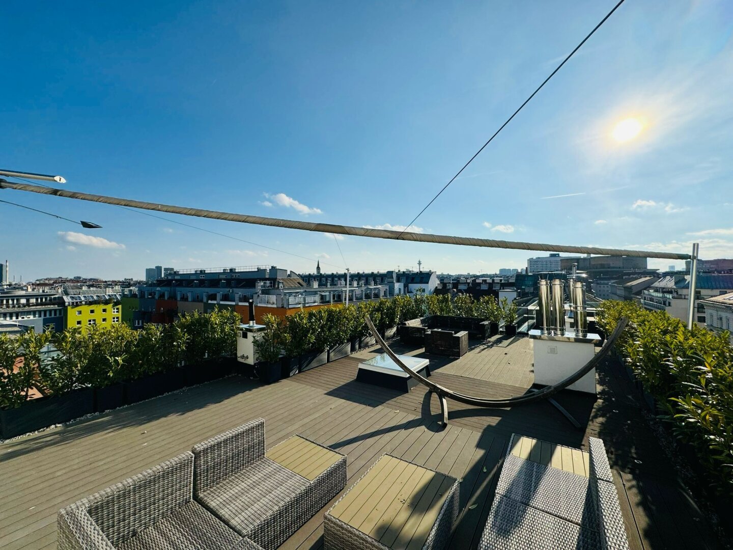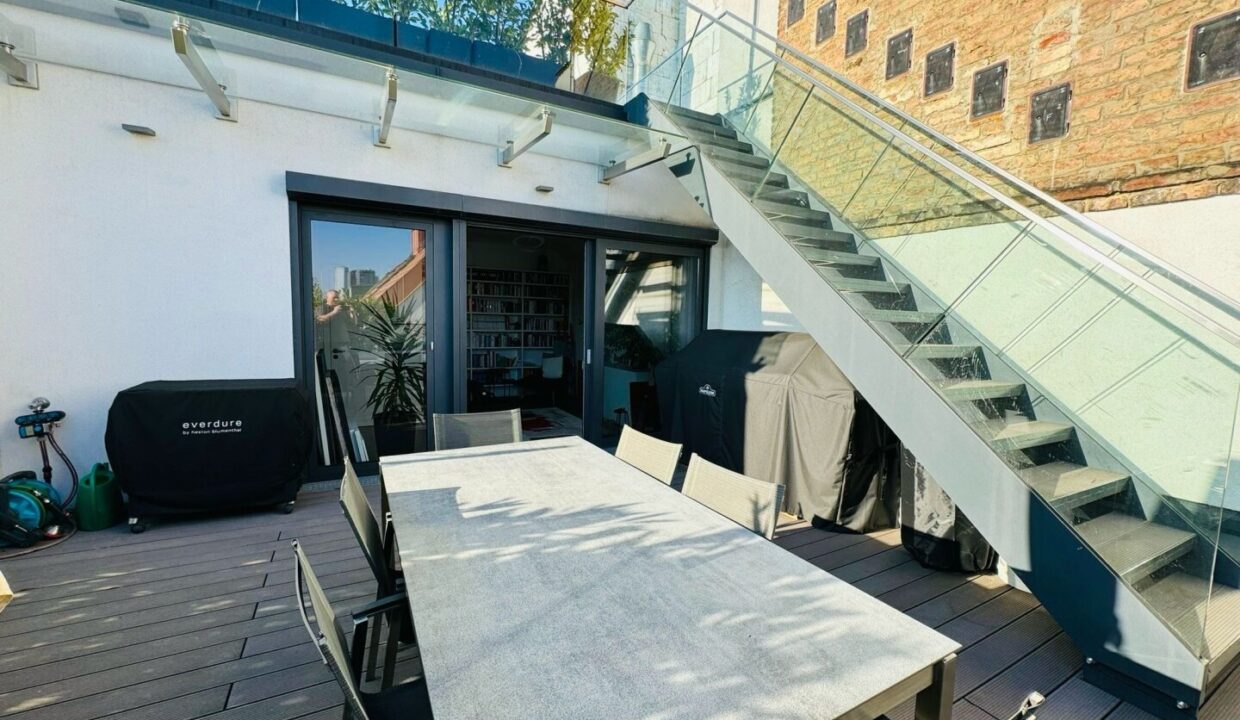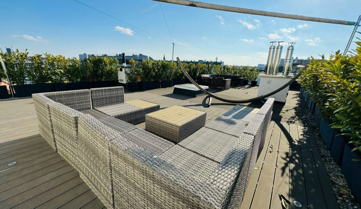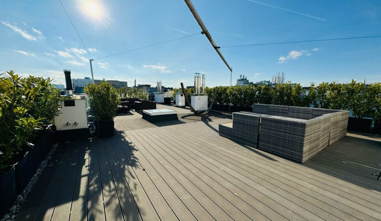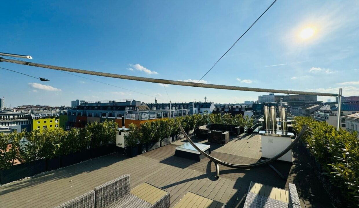 Auf einer Ebene erstrecken sich großzügige 167 m² Wohnfläche, ergänzt durch eine 9,66 m² große Frühstücksterrasse sowie eine beeindruckende 120,71 m² Flachdachterrasse mit spektakulärem Rundumblick über Wien. Das besondere Wohnjuwel befindet sich in einem liebevoll revitalisierten Jahrhundertwendehaus aus dem Jahr 1881 – nur wenige Schritte vom charmanten Rochusmarkt und dem grünen Stadtpark entfernt.
