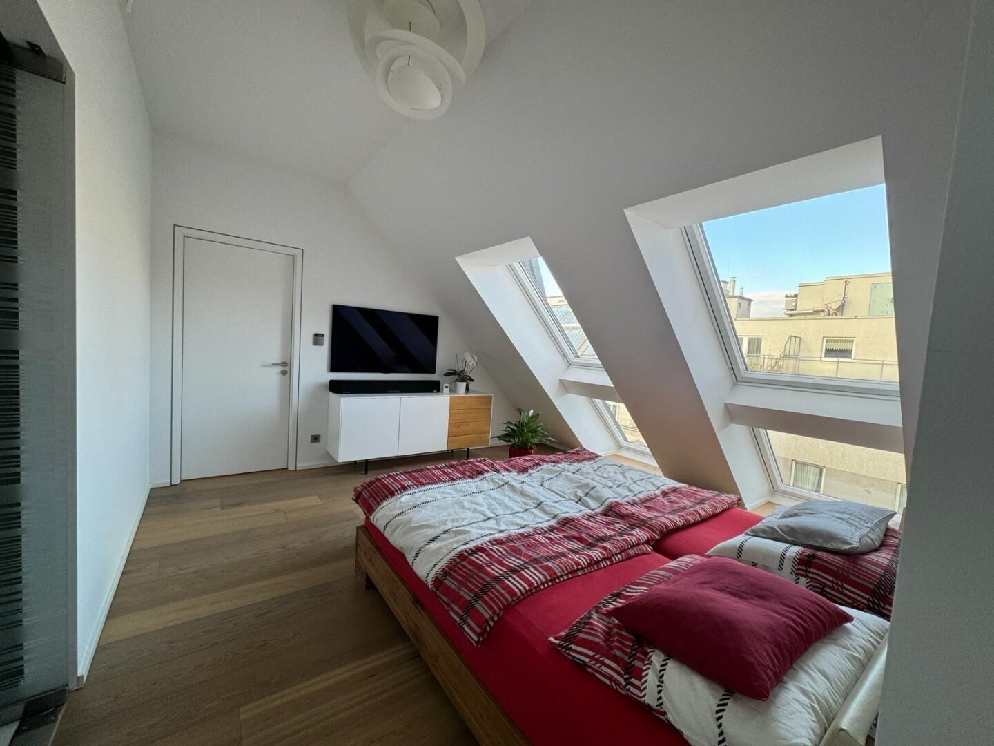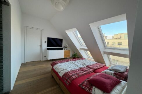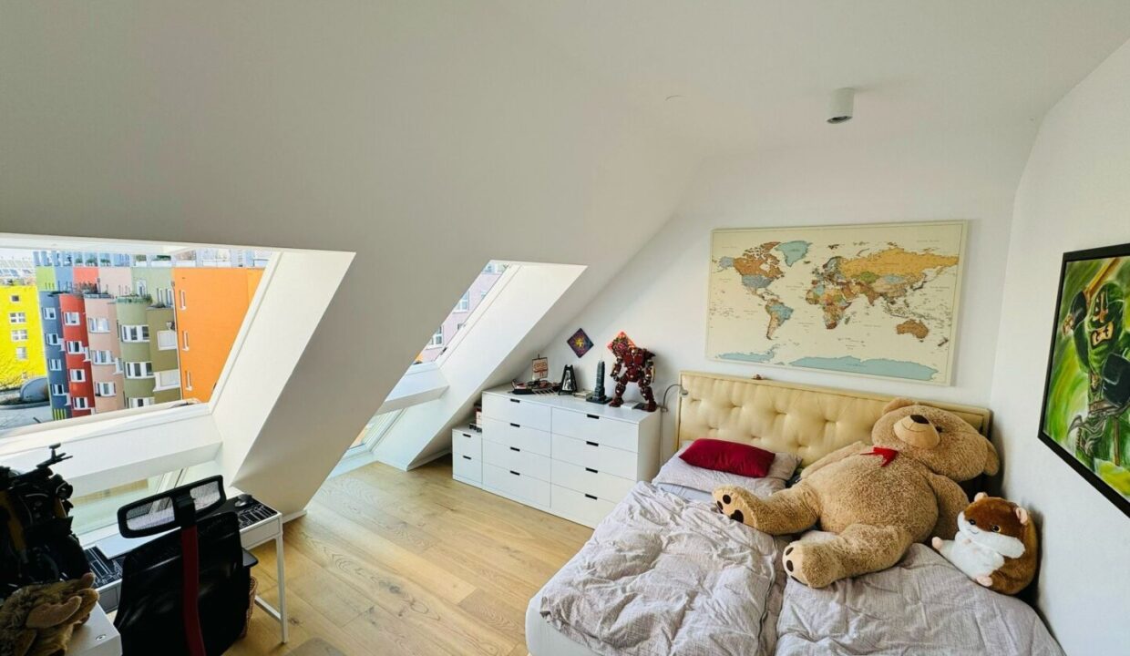 Die gesamte Dachgeschosswohnung ist auf einer Ebene angeordnet, was ein besonders harmonisches und bequemes Wohngefühl ermöglicht.