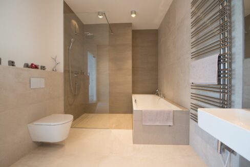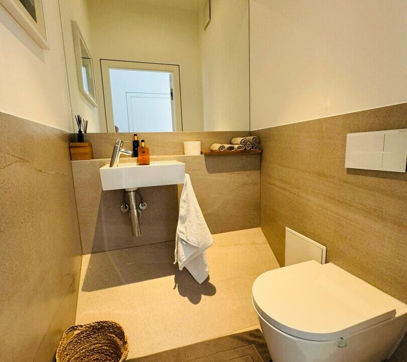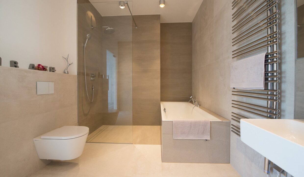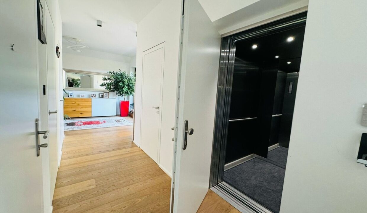 Für zusätzlichen Komfort stehen zwei Garagenplätze zur Verfügung. Hochwertige Materialien wie Echtholz-Parkettböden von Weitzer, exklusive italienische Fliesen von Fiandre und Armaturen von Hans Grohe unterstreichen den luxuriösen Charakter des Objekts.