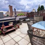 In angenehmer Süd-West-Ausrichtung liegt der kompakte Schlafbereich, mit zusätzlichem extra Schrankraum. Gesamt weisen diese beiden Bereiche eine Größe von über 16 m² auf. Eine gute Größe, um ein Doppelbett und Kommoden zu platzieren. Der separate Schrankbereich ist mit hochwertigen Maßeinbaumöbeln ausgestattet. Die herrliche Terrasse und der Garten sind über beide dieser Räumlichkeiten zu begehen – hier tut sich eine Grünoase mitten in der Stadt auf. Die Terrassen sind mit warmen Lerchenholz vertäfelt, der Garten mit Rollrasen versehen. Hier schlägt garantiert jedes Gärtnerherz höher, dem Anbau von Gemüse und Kräutern, oder aber der Pflege von Rosen, Hortensien usw. steht nichts mehr im Wege.