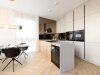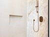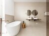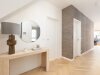 Der französische Chic des Namens spiegelt sich auch in der Auswahl der Materialen wieder. Formschöne Eleganz bei hochwertigem Parkett (Fischgrät Optik) trifft großformatiges Feinsteinzeug sowie durchdachte Lichtplanung, gesundheits- und raumklimabewusste Wandgestaltung (Lehmputz in den Schlafbereichen), zukunftsweisende Kühlung und Heizung (Luftwärmepumpe) und generelle stimmige, zeitlos elegante Ausführung im Designkonzept und überhohe Türen.