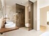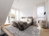 Nicht weniger spektakulär und vor allem ideal aufgeteilt ist der Master-Bedroom des Penthouses, welcher rund 30 m² umfasst und nicht nur über ein Tageslicht-Badezimmer mit Dusche, Wanne, WC und Doppelwaschbecken sowie eine begehbare Garderobe verfügt, sondern auch über eine kleine, süd/ost-seitige Terrasse mit Wien-Blick. Durch die herrliche Raumhöhe von 2,85 m wirken die einzelnen Bereiche offen und luftig und bieten für hohe Einbauschränke tolle Staumöglichkeiten um auch für umfangreichere Garderobe geeignet zu sein.