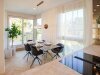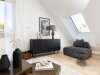Der Wohnbereich selbst ist in einen gemütlichen Bereich mit Wohnzimmer-Flair sowie einen großzügig angelegten und mit zahlreichen Glasflächen versehenen Koch-/Essbereich gegliedert. Durch die dezent gehaltene und nicht störende Schräge im Wohnzimmer entsteht sofort ein wohlig heimeliges Gefühl und man kann sich nahezu schon vorstellen, einen gemütlichen Film-Abend in den kühlen Jahreszeiten hier zu verbringen.
