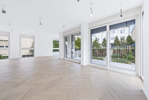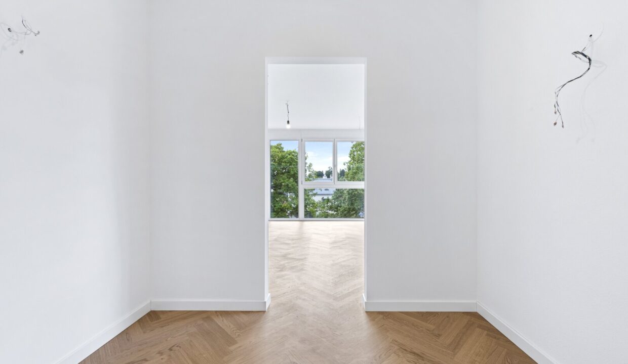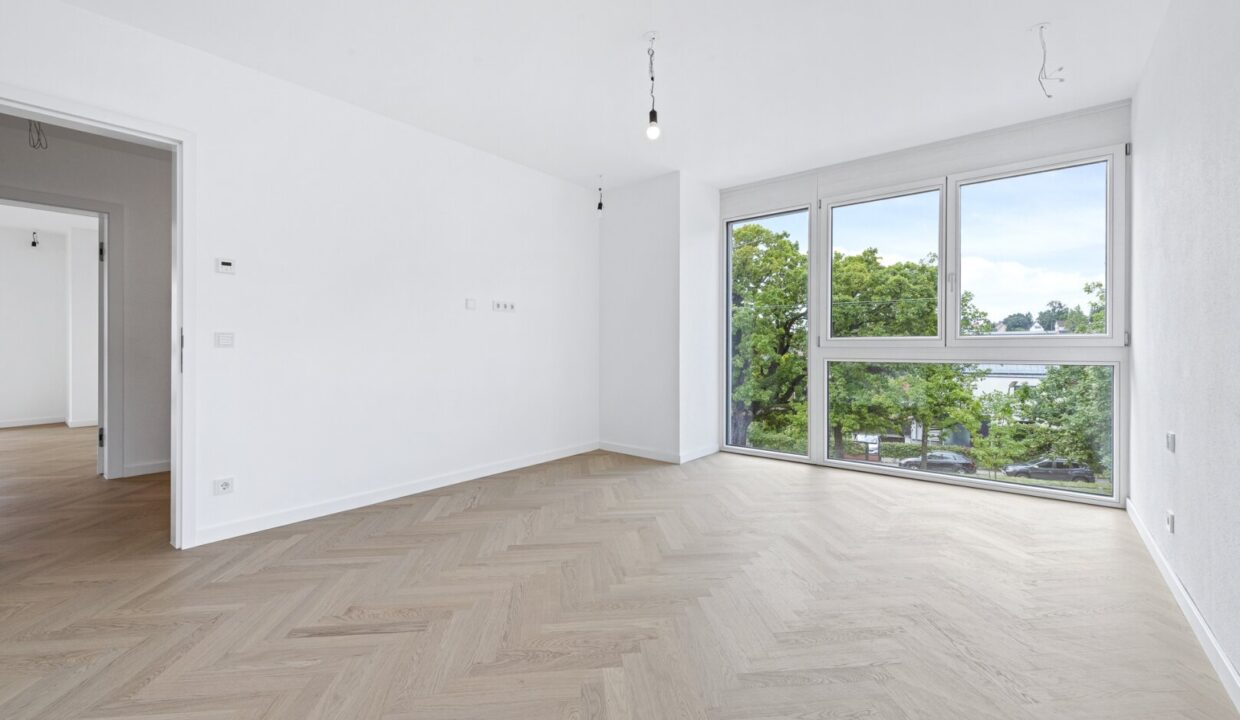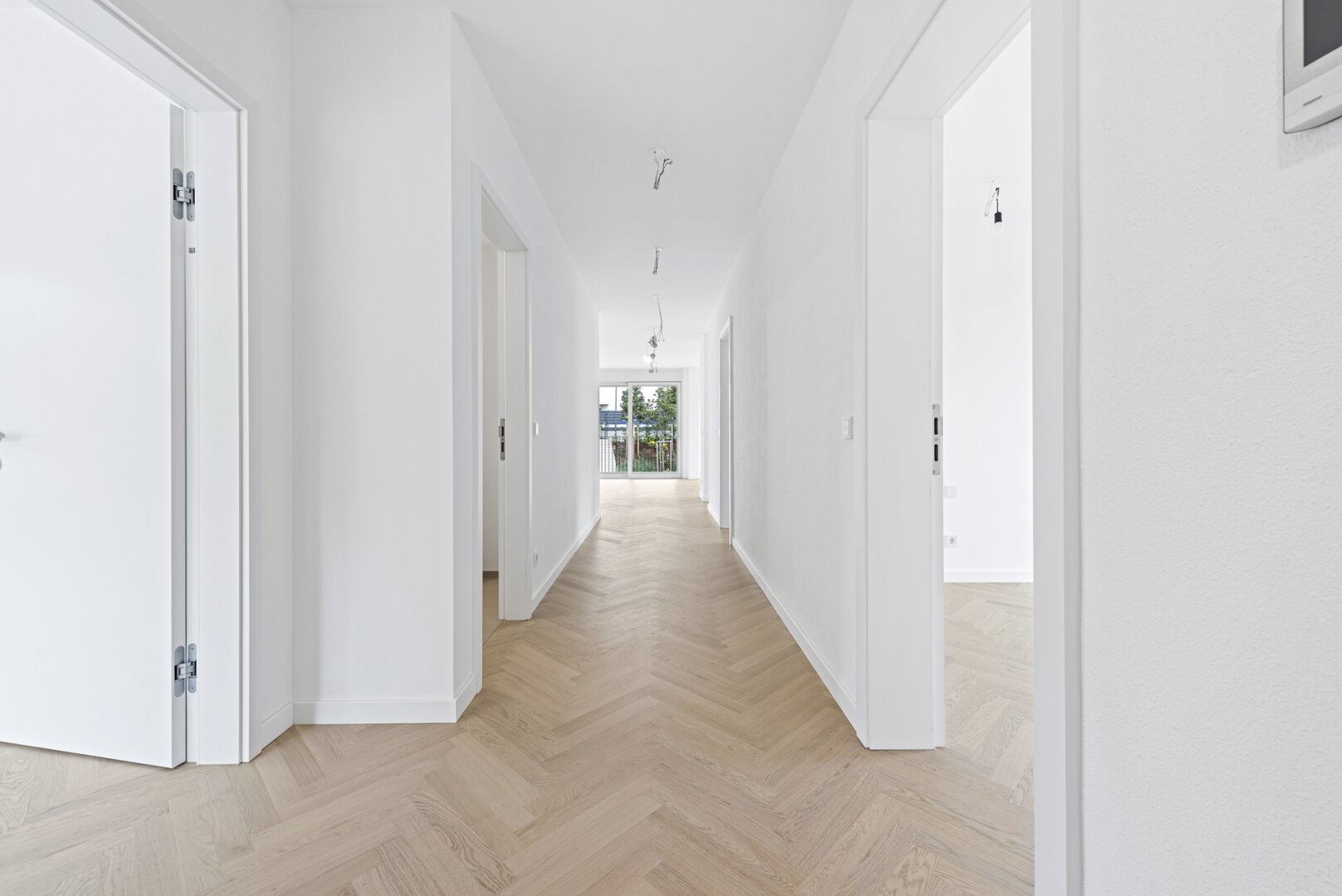 Von hier aus sind nicht nur die einzelnen Bereiche der Wohnung zentral zu begehen, sondern man genießt bereits einen einladenden Blick in das Herzstück der Wohnung, dem geräumigen Wohnbereich mit seinem vorgelagerten Balkon samt Grünblick.