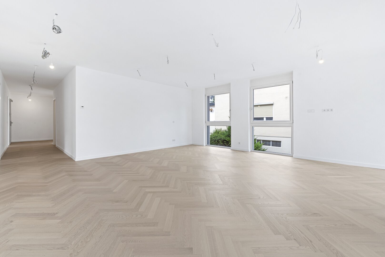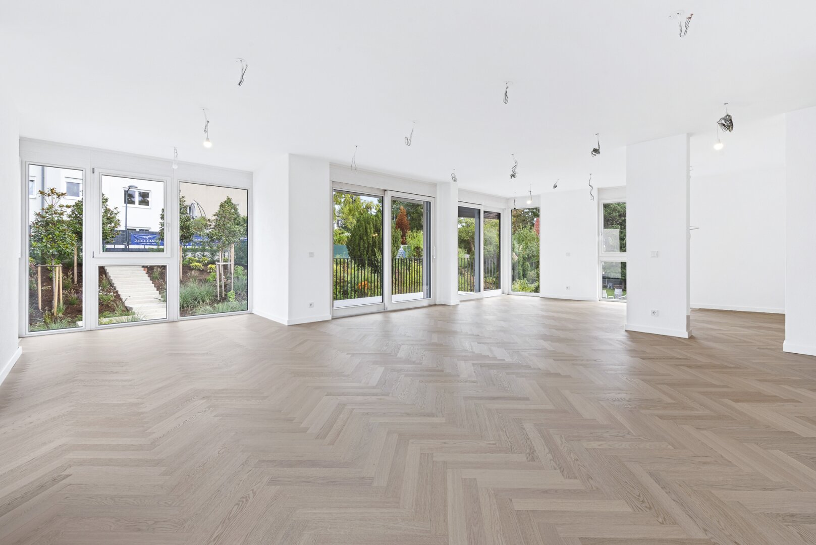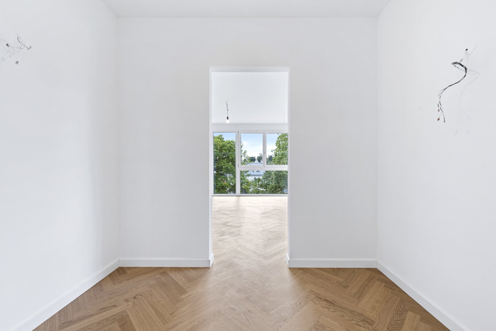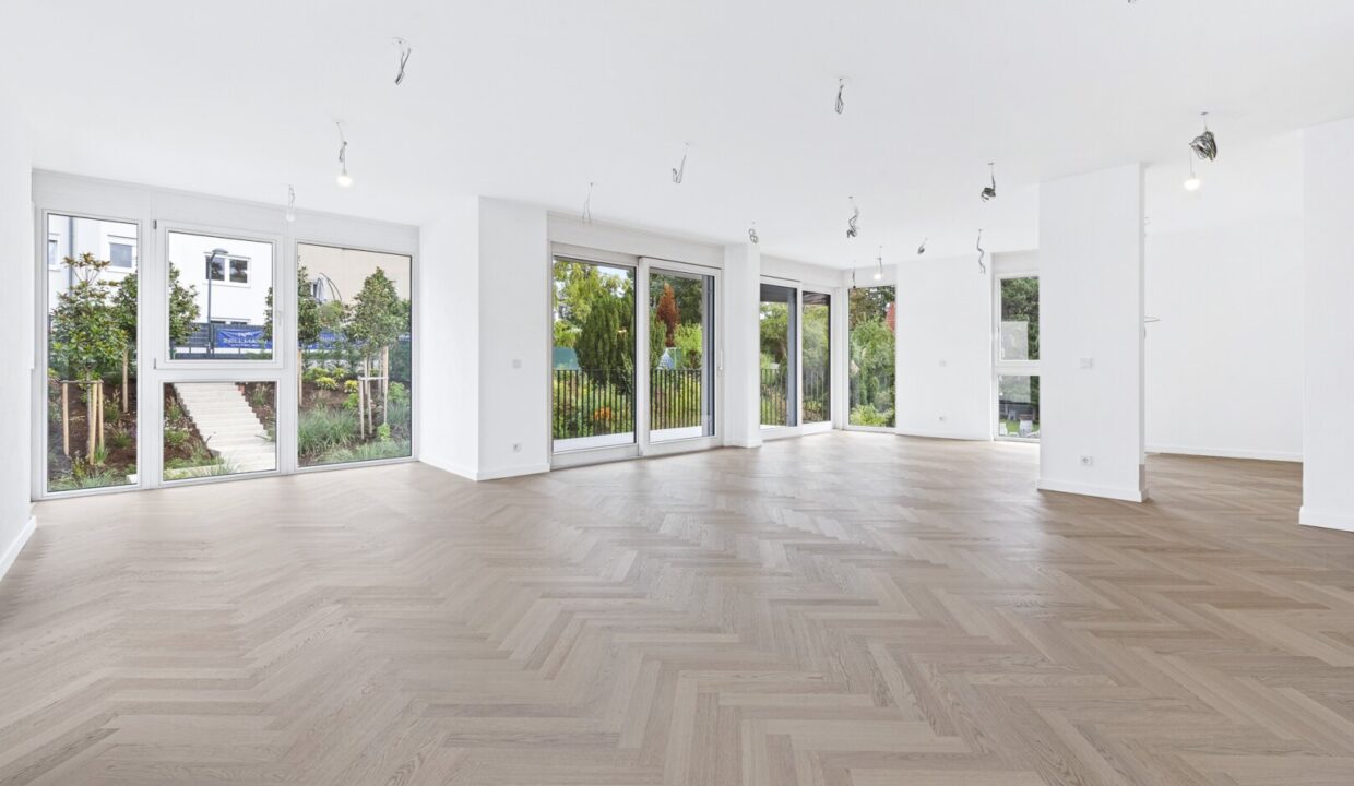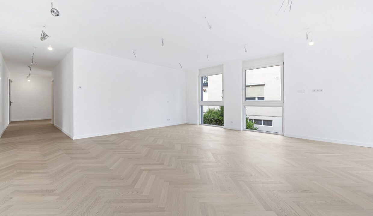 Der französische Chic des Namens spiegelt sich auch in der Auswahl der Materialen wider. Formschöne Eleganz bei hochwertigem Parkett (Fischgrät Optik) trifft großformatiges Feinsteinzeug sowie durchdachte Lichtplanung, gesundheits- und raumklimabewusste Wandgestaltung (Lehmputz in den Schlafbereichen), zukunftsweisende Kühlung und Heizung (Luftwärmepumpe) und generelle stimmige, zeitlos elegante Ausführung im Designkonzept und überhohe Türen.