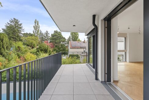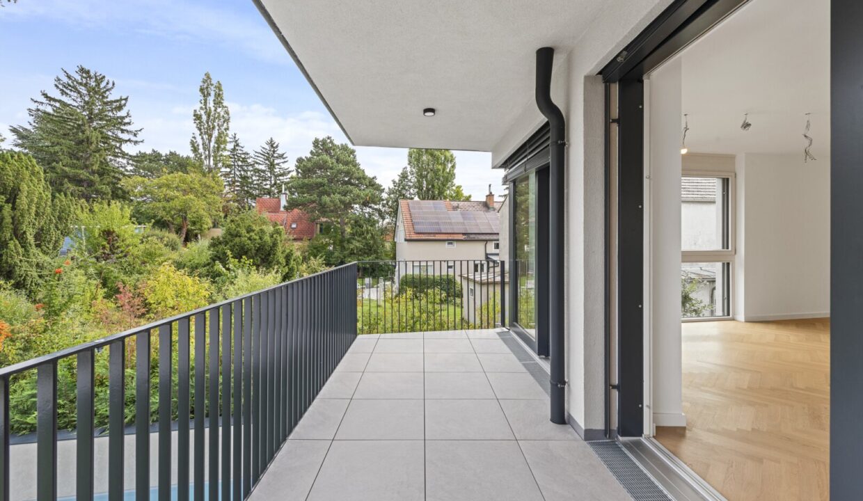 Der Balkon mit 10,88 m² ist ideal, um “mal schnell” nach Draußen zu gehen und den Kaffee mit Grünblick zu genießen.