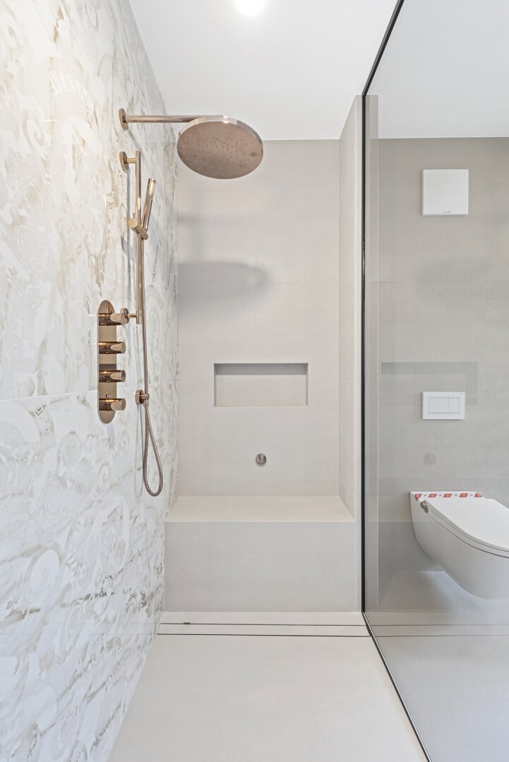 Ein besonderes Highlight bilden die Versace-Fliesen in den Duschen: luxuriöse Akzente, die italienische Designästhetik mit der Langlebigkeit keramischer Werkstoffe verbinden. Keramik ist nicht nur pflegeleicht und wasserresistent, sondern auch recyclingfähig – so wird Glamour Teil einer nachhaltigen Architektur.