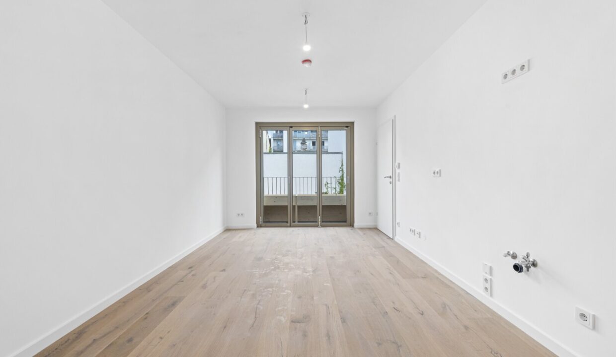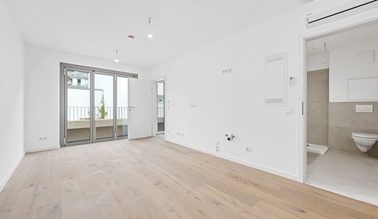 Nach dem Betreten der ca. 31 m² großen 2-Zimmer-Wohnung befindet man sich im offen gestalteten Vorraum, welcher idealen Platz für eine Garderobe, oder einen Schrank bietet. Die angeschlossene Wohnküche mit 16,60 m² bietet viel Licht dank bodentiefen faltbaren Fensterflächen. Hier lassen sich eine Couch und ein gemütlicher Essbereich wunderbar einrichten. Sämtliche Anschlüsse für die zukünftige Planung seiner individuellen Küchenzeile sind natürlich vorbereitet.