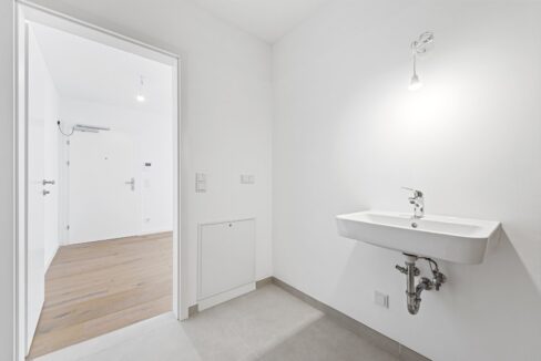 Nach dem Betreten der ca. 31 m² großen 2-Zimmer-Wohnung befindet man sich im offen gestalteten Vorraum, welcher idealen Platz für eine Garderobe, oder einen Schrank bietet. Die angeschlossene Wohnküche mit 16,60 m² bietet viel Licht dank bodentiefen faltbaren Fensterflächen. Hier lassen sich eine Couch und ein gemütlicher Essbereich wunderbar einrichten. Sämtliche Anschlüsse für die zukünftige Planung seiner individuellen Küchenzeile sind natürlich vorbereitet.