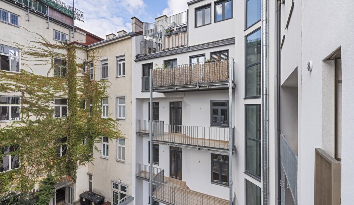 Das 2. und 3. Obergeschoß sowie das 1. Dachgeschoß bietet den künftigen Eigentümern luftige Balkone. Genügend Platz, um die lauen Sommerabende mit einem kühlen Getränk gemütlich ausklingen zu lassen.