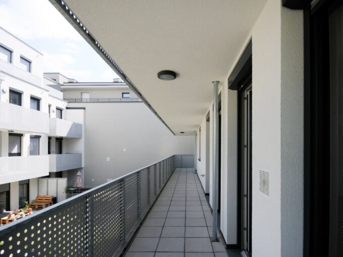 Das gesamte Wohnprojekt ist modern, hell und freundlich gestaltet und in zeitlosem, ansprechenden Design umgesetzt. Großflächige Fliesen, großzügig dimensionierte Glasflächen und formschöne Balkon-Geländer bieten sowohl ausreichend Licht und Helligkeit, als auch angenehmen Sichtschutz.