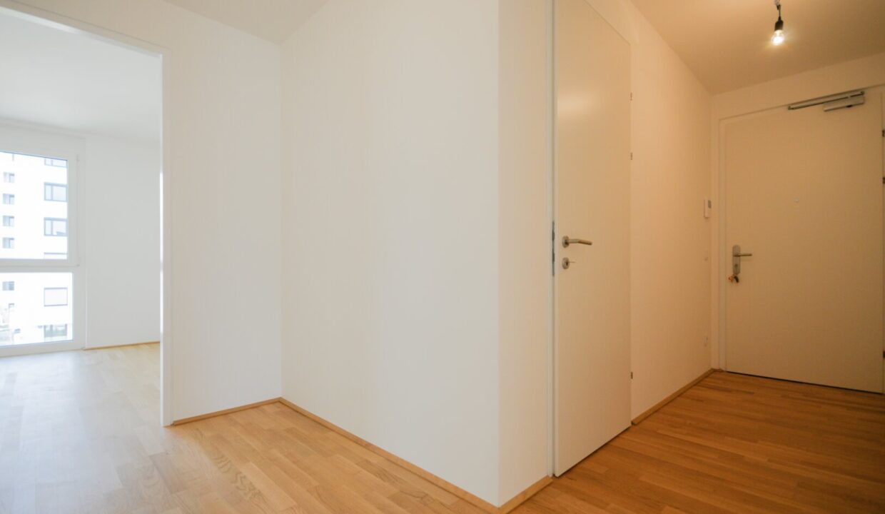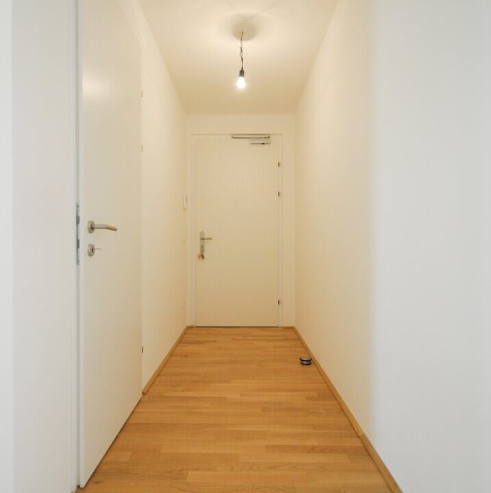 Man betritt die im zweiten Obergeschoss liegende 2-Zimmer-Wohnung mit 50,39 m² Größe über einen rund 9 m² großen Vorraum, von welchem sämtliche Räumlichkeiten der Wohnung zentral begehbar sind.