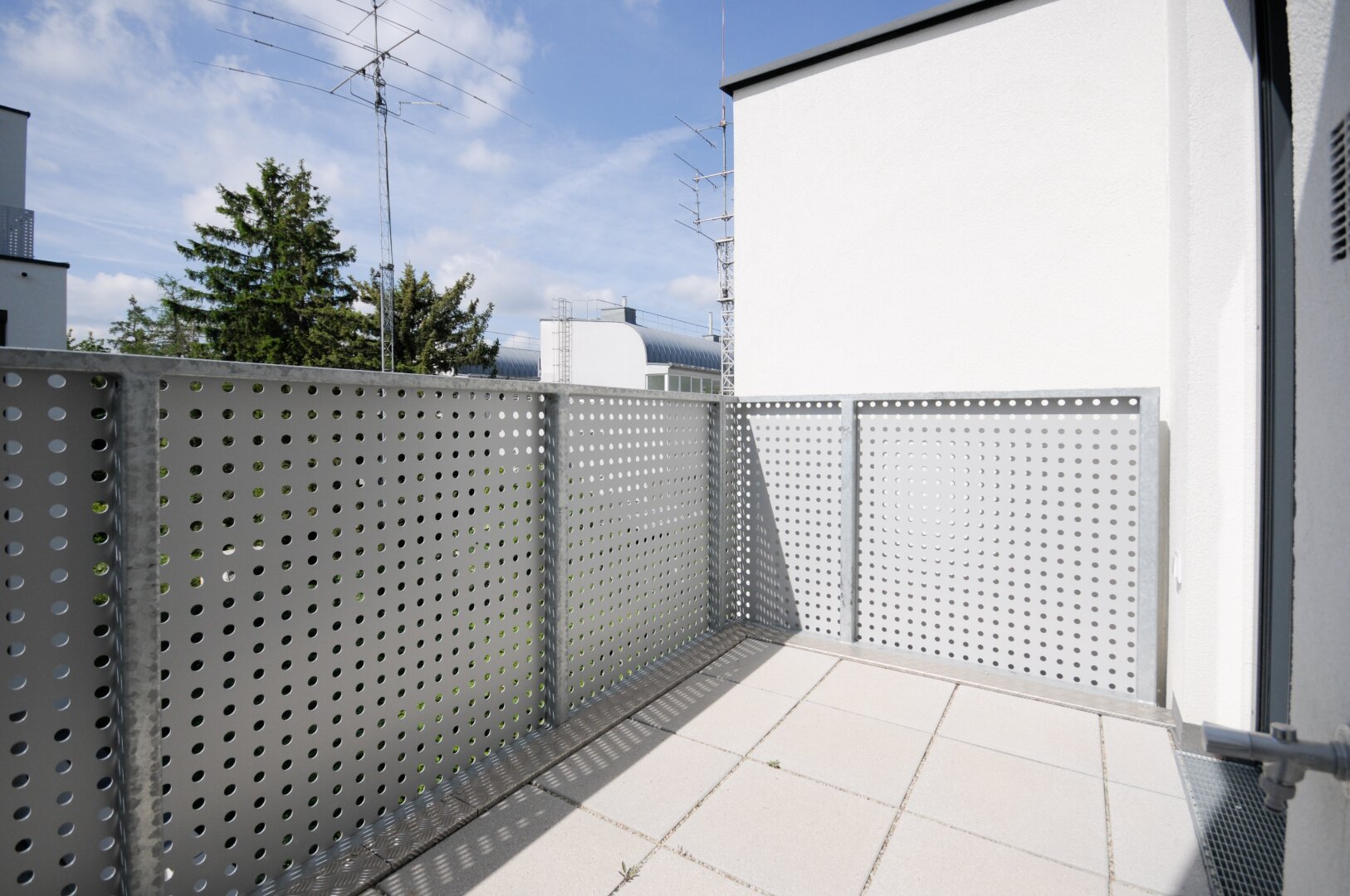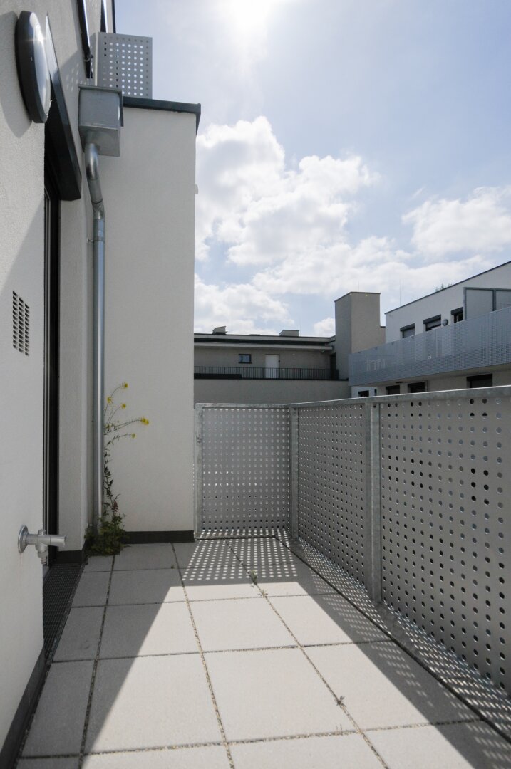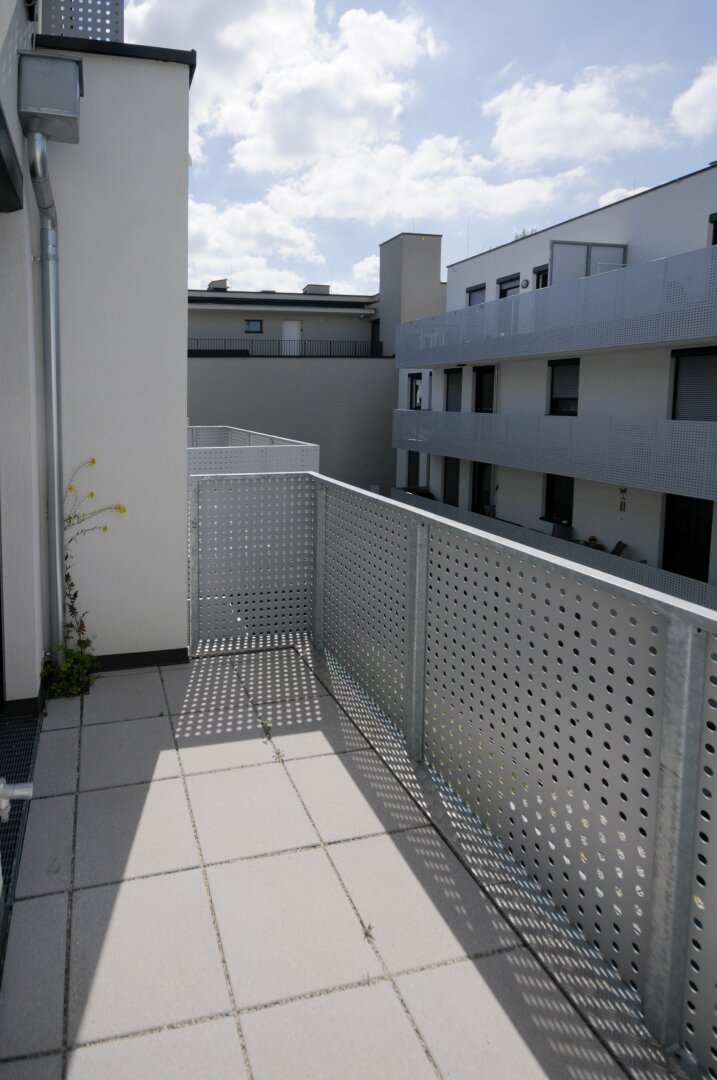 Das gesamte Wohnprojekt ist modern, hell und freundlich gestaltet und in zeitlosem, ansprechenden Design umgesetzt. Großflächige Fliesen, großzügig dimensionierte Glasflächen und formschöne Balkon-Geländer bieten sowohl ausreichend Licht und Helligkeit, als auch angenehmen Sichtschutz.