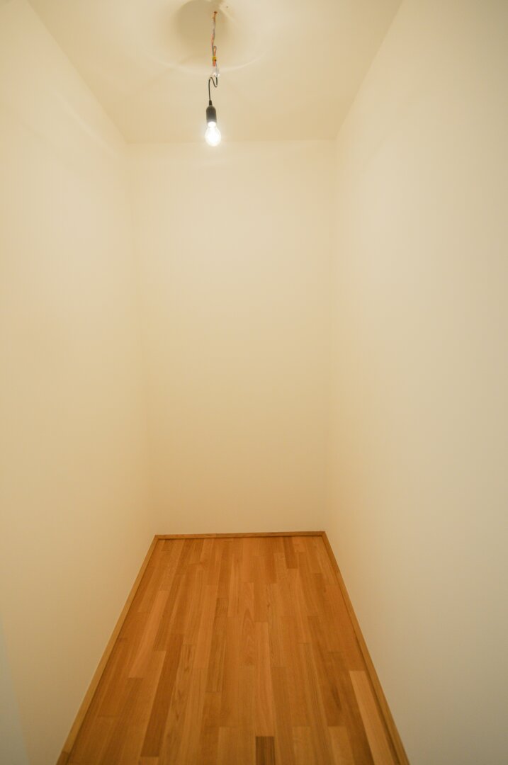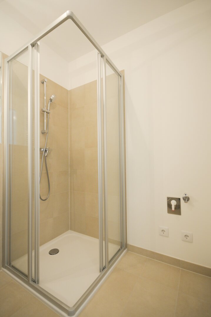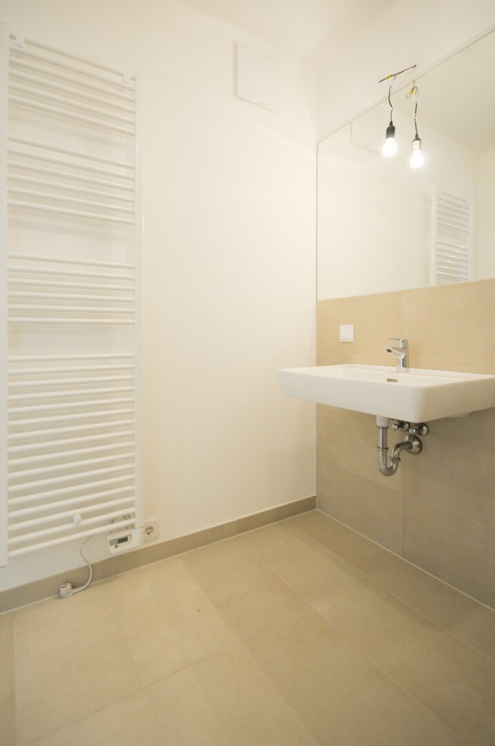 Nach dem Betreten der Wohnung befindet sich zu seiner Rechten ein praktischer Abstellraum. Vis à vis vom Eingang liegt die separate Toilette sowie das wunderbar helle Badezimmer, welches auf fast 4 m² mit einer Dusche, einem Handwaschbecken und Spiegel und einem Waschmaschinen-Anschluss ausgestattet ist.