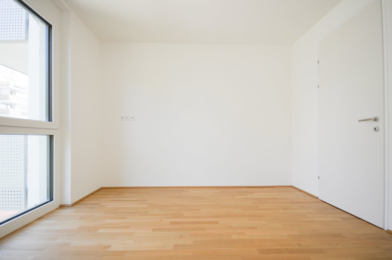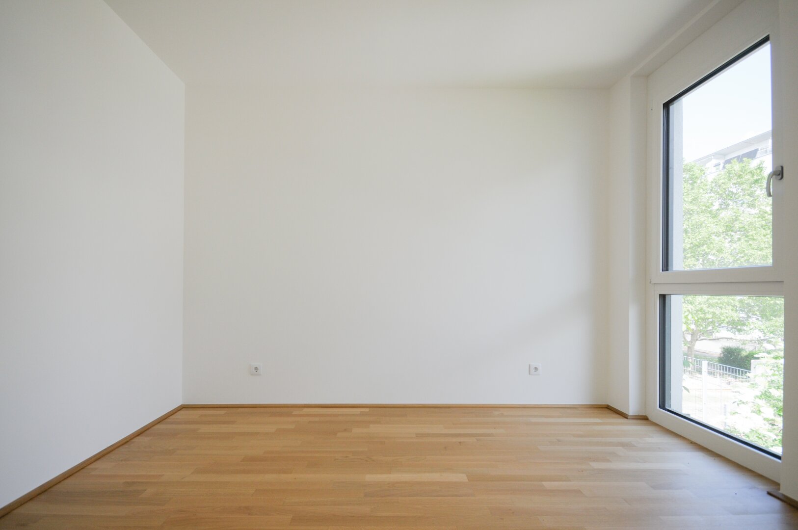 Das gut dimensionierte Schlafzimmer mit 12,15 m² Größe lässt sich ideal mit einem Doppelbett samt Nachtkästchen und einem großen Schrank ausstatten. Große Fenster lassen viel frische Luft und Licht für ein erholtes Aufwachen in den Raum.