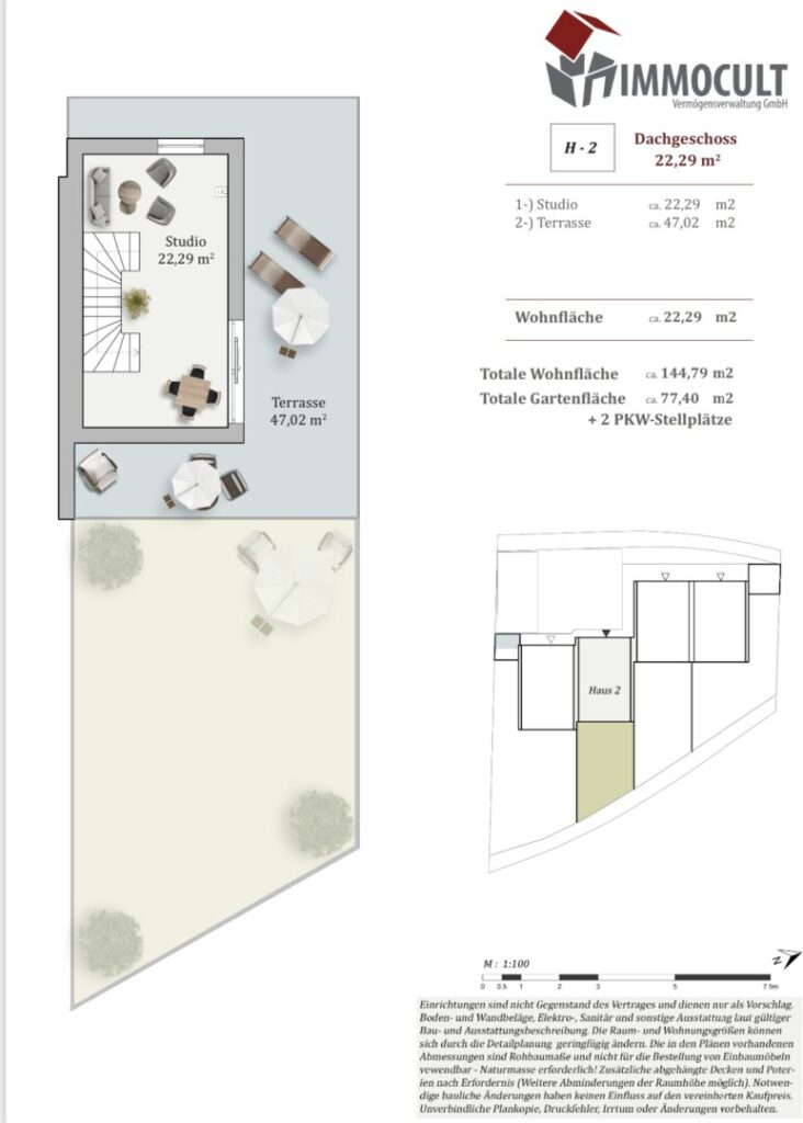 Alles in allem verfügt das Haus über eine Wohnfläche von rund 144,80 m² und eine Freifläche inkl. Terrasse 47 m², PKW-Stellplatz und Garten von rund 77,4 m².