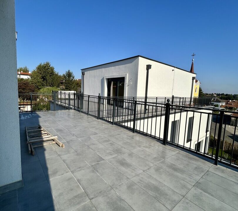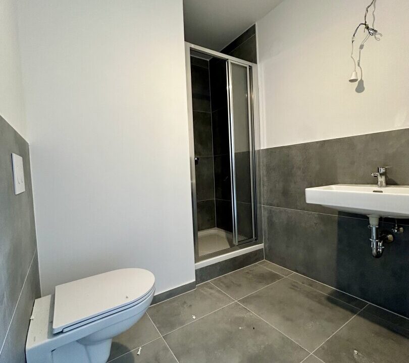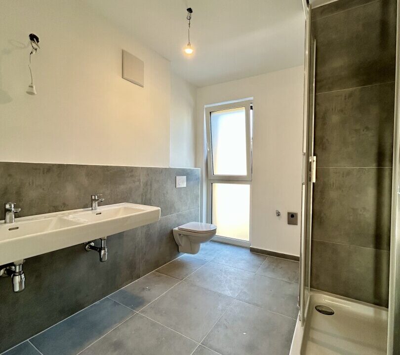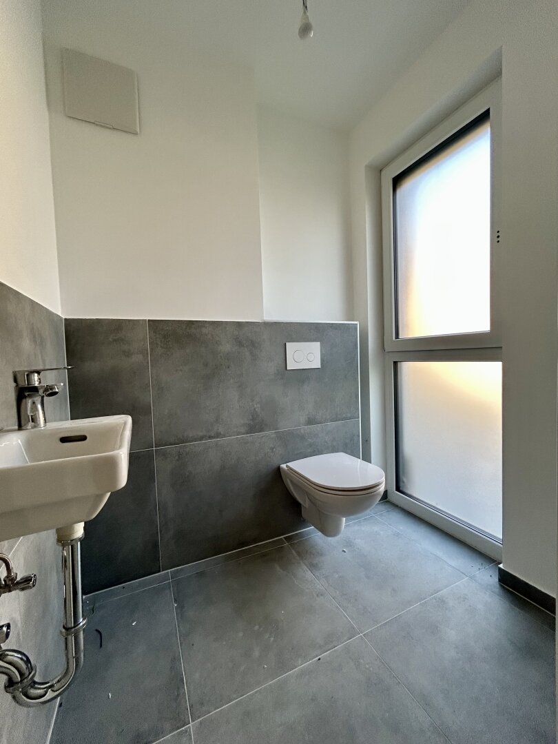 Die Verfliesung erfolgt im Vorraum, dem Technikraum sowie den Nassbereichen und wird in moderner Feinsteinzeug-Optik ausgeführt.