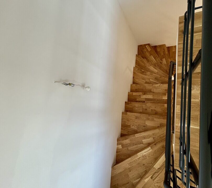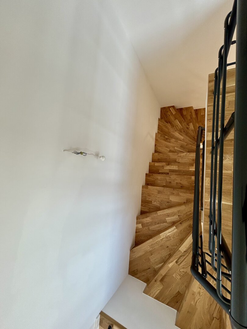 Der Parkett, welcher in sämtlichen Wohnbereichen verlegt wird, ist ein hochwertiger und fußbodenheizungs-tauglicher Echtholz-Parkett.