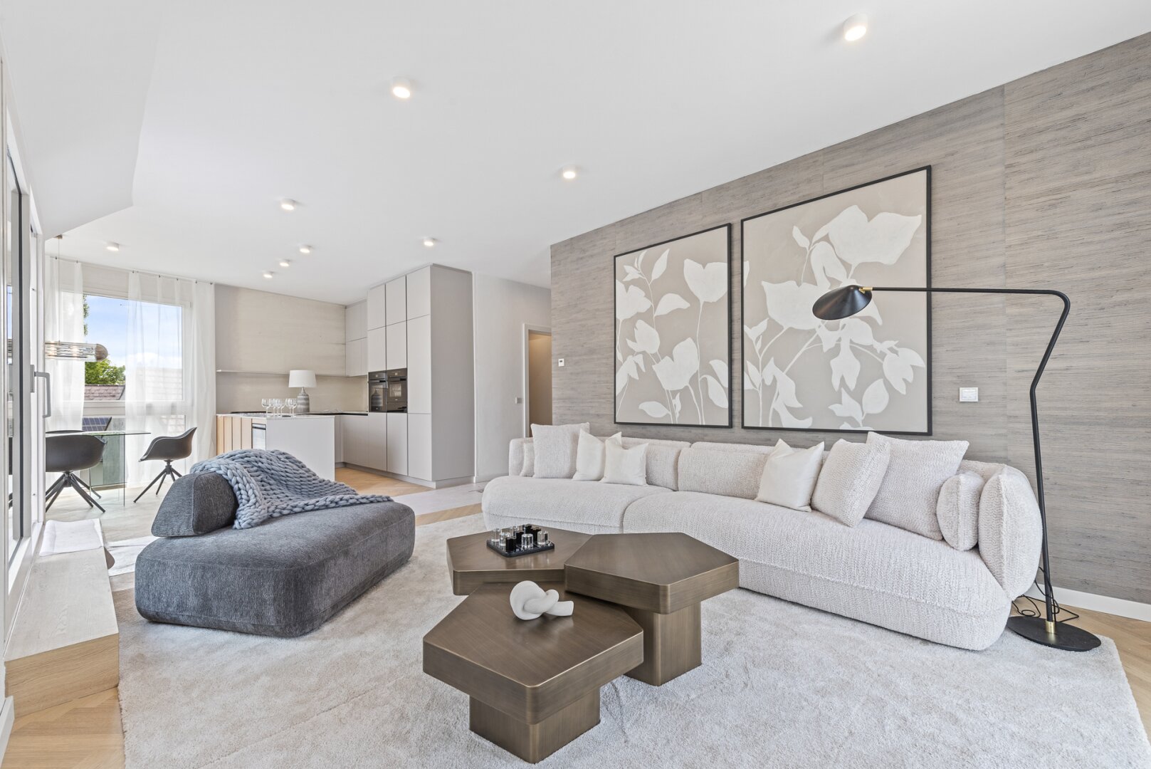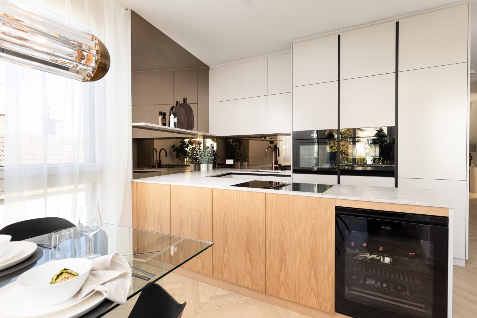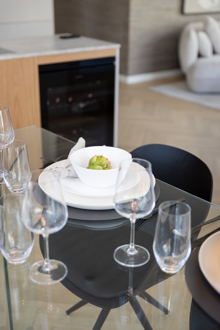 Schon die elegante, zeitlose Formensprache der Fassade, die Teile der Architektur spielerisch und dezent verhüllt, lässt auf die luxuriöse Natur der Räume schließen. Eine gelungene Melange aus historischen, akzentuiert eingesetzten Stilelementen und moderner, funktionaler Gestaltung bildet die Grundlage für ein hohes Maß an Komfort und bester Lebensqualität.