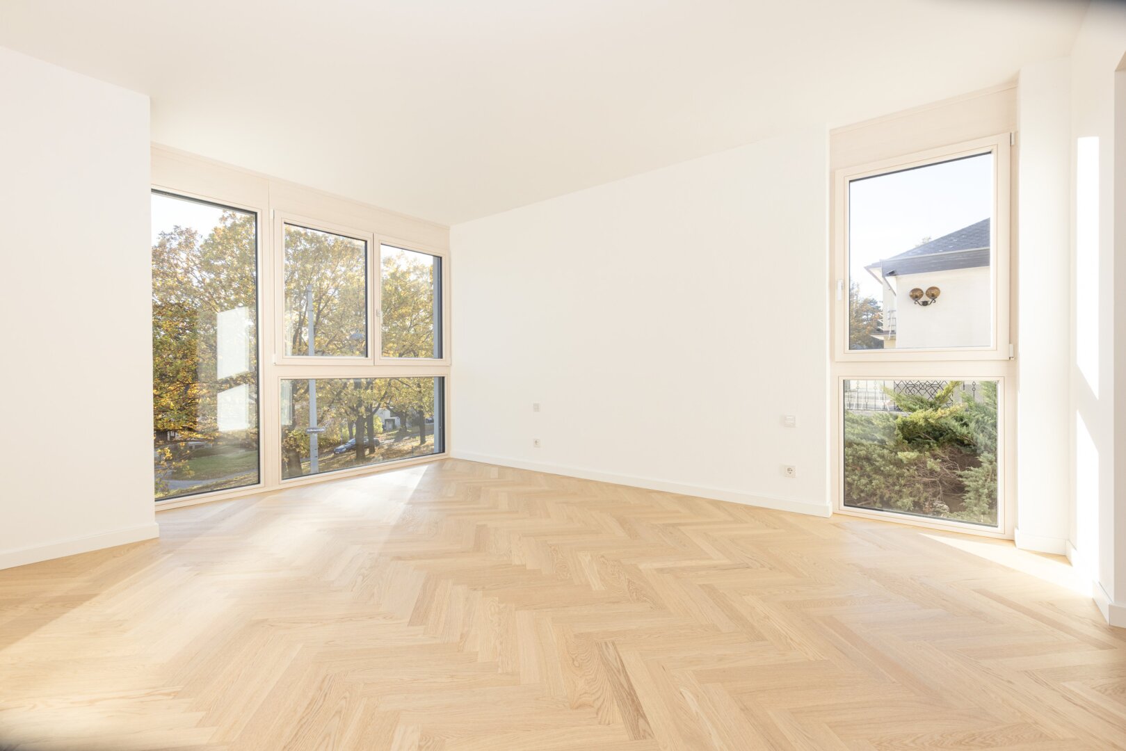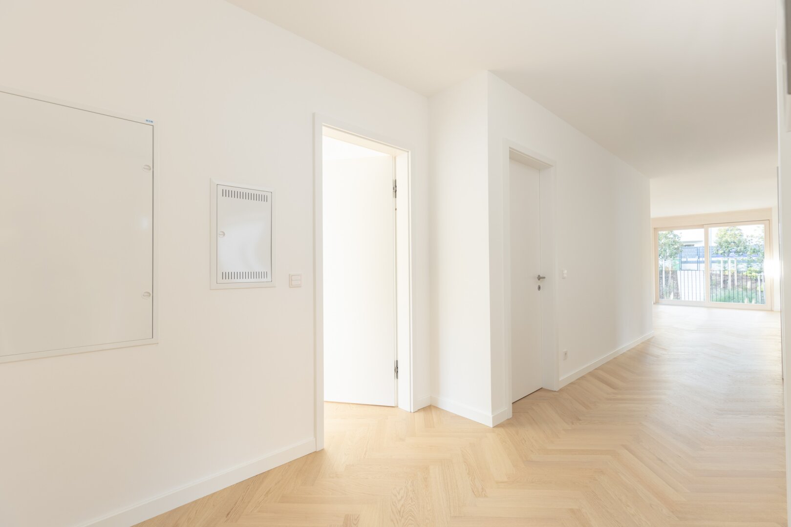 Von hier aus sind nicht nur die einzelnen Bereiche der Wohnung zentral zu begehen, sondern man genießt bereits einen einladenden Blick in das Herzstück der Wohnung, dem geräumigen Wohnbereich mit seinem vorgelagerten Balkon samt Grünblick.